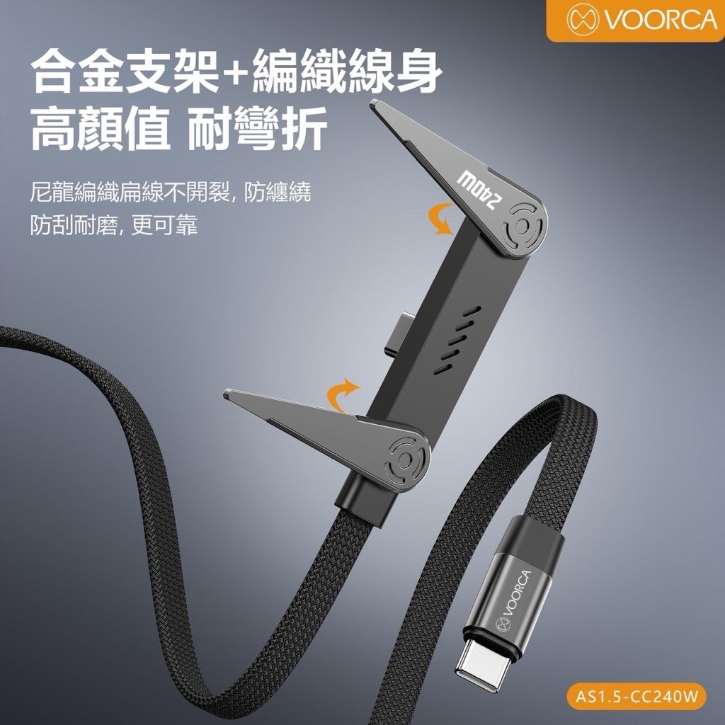 240W 1.5米多功能帶鋅合金支架傳輸充電線
