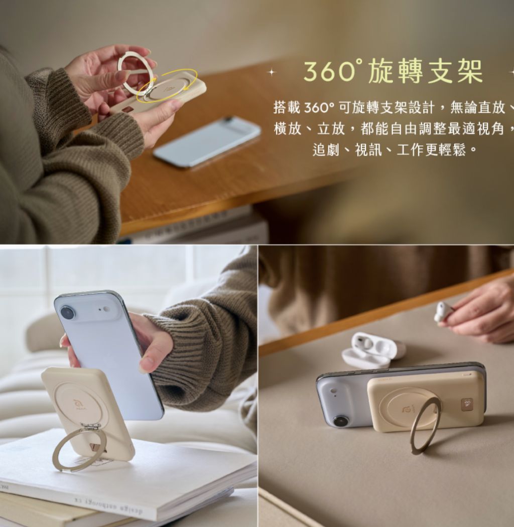✔ 磁吸+旋轉支架設計