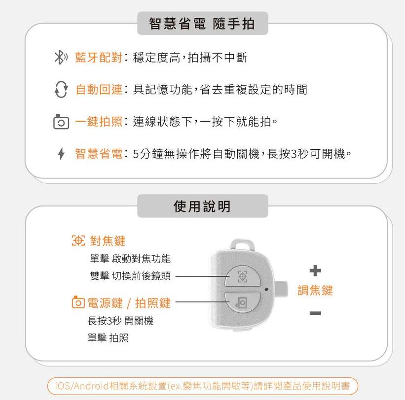 ✔ 藍牙遙控:支援拍照、錄影、對焦與變焦,操作簡單